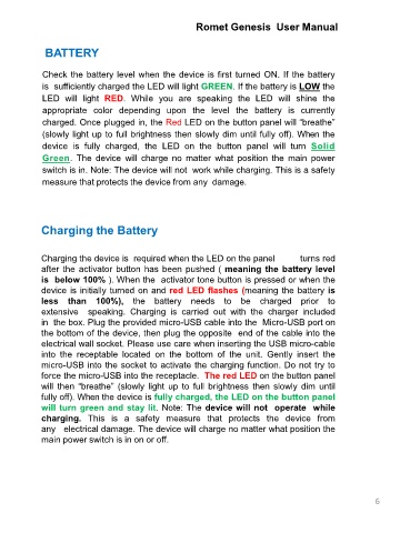 charged. Once plugged in, the Red LED on the button panel will “breathe”