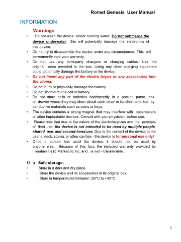 user's neck, stoma, or other cavities - the device is for personal use only!