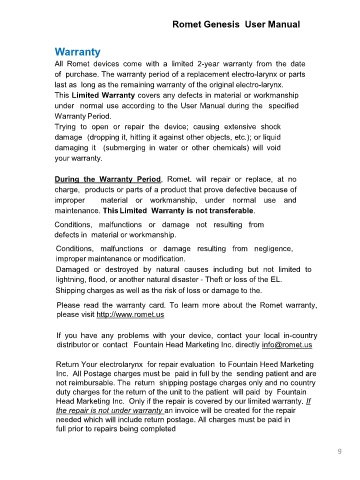 Return Your electrolarynx for repair evaluation to Fountain Heed Marketing