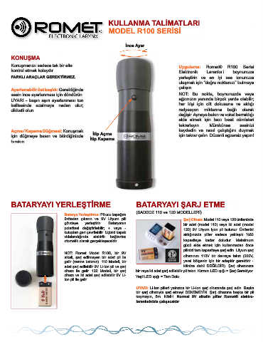 NOT: Romet Model R100, bir 9V capacity. Charge your battery to full